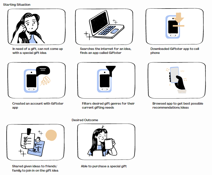 We created a questionaire that asked about the gift buying process, motives, and feelings throughout. Data and information collected from interviews formed our persona.